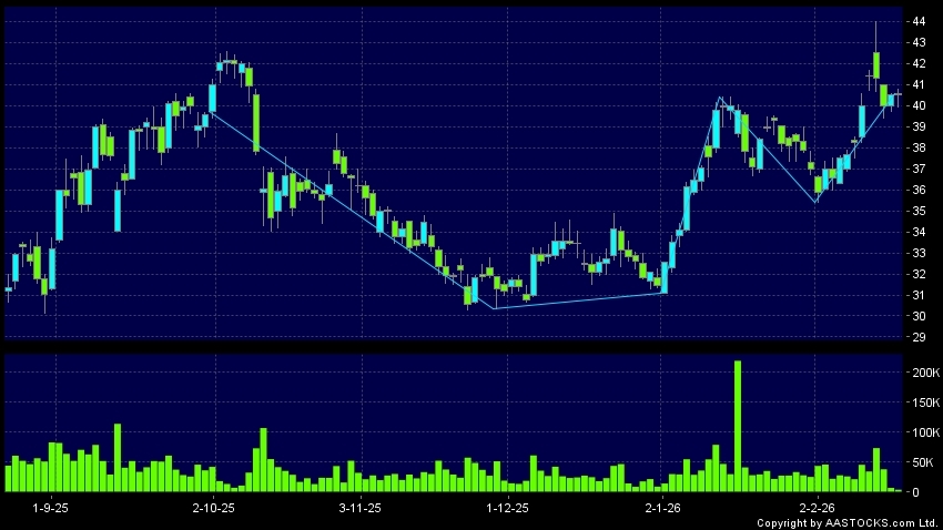 Disclaimer:The information, financial market data, quotes, charts, statistics and / or various technical analysis indicators are automatically generated based on the analyses and interpretations of publicly available information and should be used as references only at your own discretion. Such automatically generated content does not reflect the views or opinions of AASTOCKS.com Limited nor does AASTOCKS.com Limited make any guarantees to their accuracy, completeness, timeliness or correctness. You are advised to consult independent professional advice to verify pricing information or to obtain more detailed market information. Any uses of information or trades executed following the said automatically generated content are taken at your own risk for your own account.