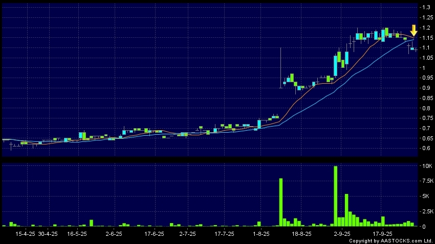 碧瑶绿色集团(01397.HK) -0.020 (-1.739%) 10天移动平均线跌穿20天移动平均线,出现死亡交叉。现价报1.090,下跌0.909%,成交量10.80万股,成交额11.80万。
