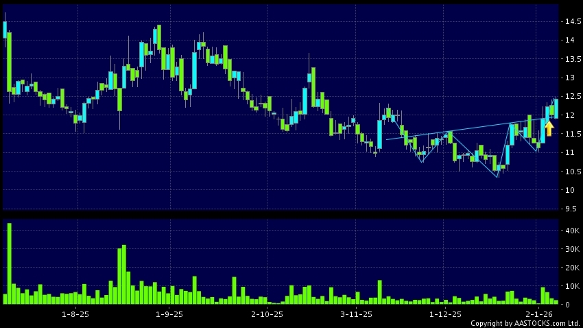 头肩底是典型的利好讯号,当股价升穿阻力线时,升势确认股价将持续上升,技术走势向好。(港股报价延迟最少十五分钟。沽空资料截至 2026-01-14 12:25。)