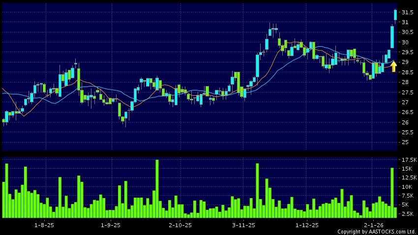 免責聲明:以上金融市場數據、報價、圖表 及/或各種技術分析指標乃根據公開資料分析和演釋自動生成的,僅作參考使用。此類自動生成的內容並不代表AASTOCKS.com Limited的立場。AASTOCKS.com Limited並不保證其準確性、完整性、實時性或者正確性。閣下應諮詢獨立專業意見,以核實定價資料或獲取更詳細的市場信息及須為所有跟隨此類自動生成的內容執行的交易或使用該內容負責。