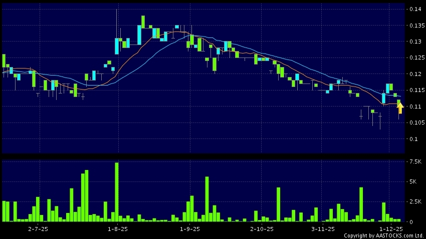 莊士中國(00298.HK) -0.001 (-0.901%) 10天移動平均線升穿20天移動平均線,出現黃金交叉。現價報0.110,無升跌,成交量0.00股,成交額0.00。