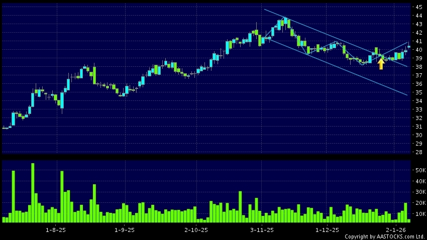 區域突破指股價在過去的一段時間只在一個範圍在內活動,然後股價上升作出突破,升穿區域的頂部,技術走勢向好。(港股報價延遲最少十五分鐘。沽空資料截至 2026-01-09 16:25。)