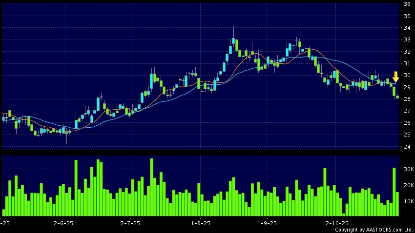 免責聲明:以上金融市場數據、報價、圖表 及/或各種技術分析指標乃根據公開資料分析和演釋自動生成的,僅作參考使用。此類自動生成的內容並不代表AASTOCKS.com Limited的立場。AASTOCKS.com Limited並不保證其準確性、完整性、實時性或者正確性。閣下應諮詢獨立專業意見,以核實定價資料或獲取更詳細的市場信息及須為所有跟隨此類自動生成的內容執行的交易或使用該內容負責。