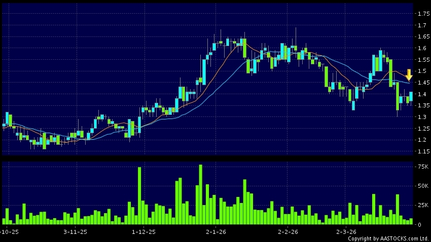 死亡交叉是一個利淡信號,指股價的短期移動平均線跌穿長期移動平均線,例如50天線跌穿250天線,在圖表上構成交叉的形狀。股價通常會下跌形成一個下降趨勢,技術走勢偏軟。(港股報價延遲最少十五分鐘。沽空資料截至 2026-03-27 16:25。)