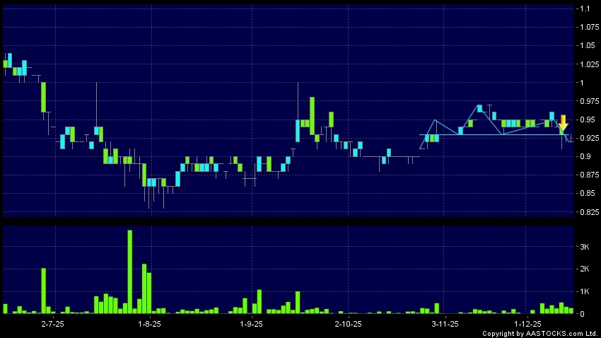 奧思集團(01161.HK) 0.000 (0.000%) 呈現頭肩頂向下突破。現價報0.920,下跌1.075%,成交量25.80萬股,成交額23.79萬。