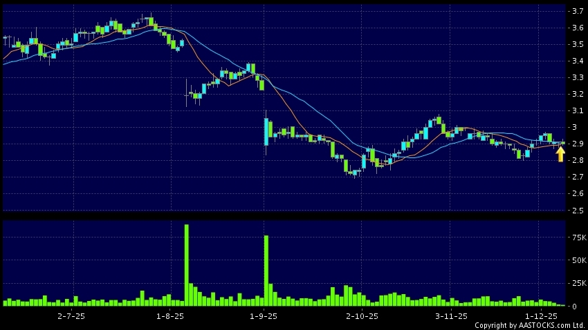 福壽園(01448.HK) +0.020 (+0.714%) 沽空 $1.72百萬; 比率 20.228% 10天移動平均線升穿20天移動平均線,出現黃金交叉。現價報2.900,下跌0.344%,成交量1.50百萬股,成交額4.36百萬。