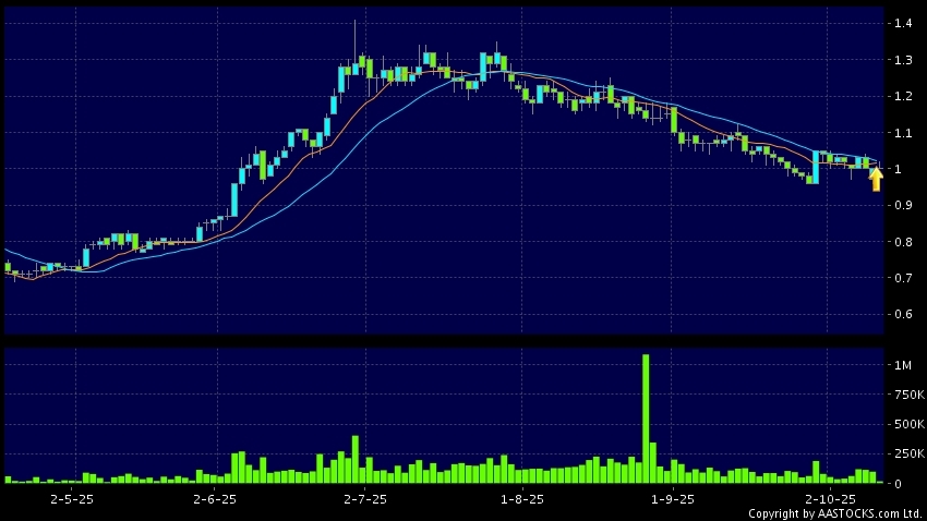 中信金融資產(02799.HK)  +0.010 (+1.010%)    沽空 $7.36百萬; 比率 10.183%   10天移動平均線升穿20天移動平均線,出現黃金交叉。現價報1.010,上升1.000%,成交量2.00千萬股,成交額2.02千萬。