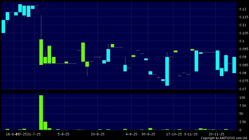 榮豐億控股(03683.HK) 0.000 (0.000%) 的股價出現趨勢逆轉。現價報0.090,上升4.651%,成交量1.50萬股,成交額1.25千。