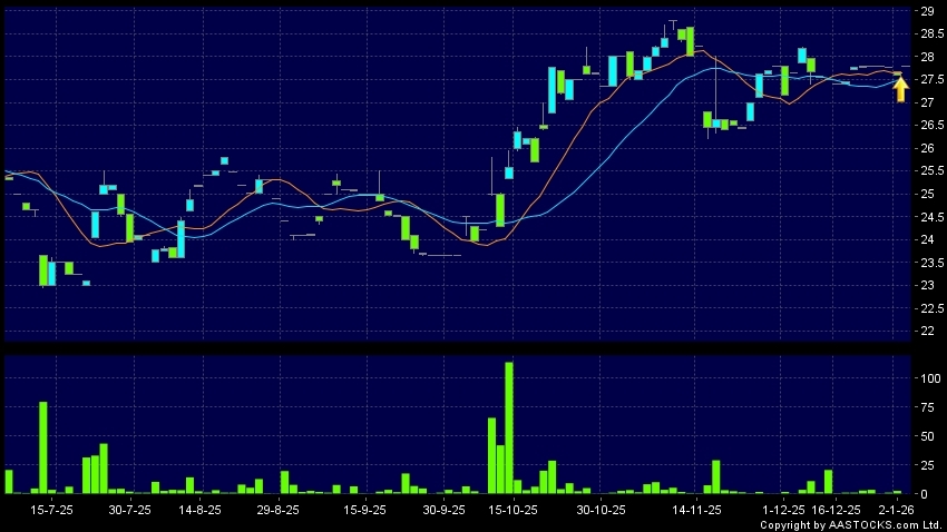 FAST RETAIL-DRS(06288.HK) +2.700 (+9.712%) 10天移動平均線升穿20天移動平均線,出現黃金交叉。現價報27.800,上升0.725%,成交量0.00股,成交額0.00。