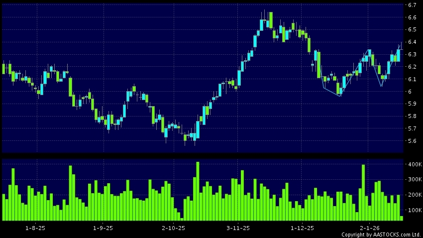 Disclaimer:The information, financial market data, quotes, charts, statistics and / or various technical analysis indicators are automatically generated based on the analyses and interpretations of publicly available information and should be used as references only at your own discretion. Such automatically generated content does not reflect the views or opinions of AASTOCKS.com Limited nor does AASTOCKS.com Limited make any guarantees to their accuracy, completeness, timeliness or correctness. You are advised to consult independent professional advice to verify pricing information or to obtain more detailed market information. Any uses of information or trades executed following the said automatically generated content are taken at your own risk for your own account.