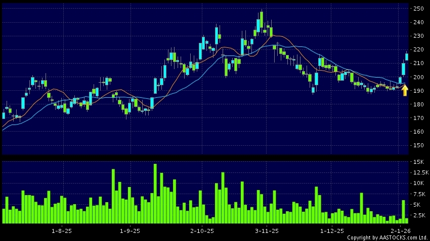 BILIBILI-W(09626.HK)'s SMA 10 crosses above SMA 20, which is a golden cross. Last printed at 217.800; rose 3.813%; on volume of 1.86M shares and turnover of $403.22MRecent Performa...