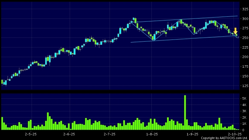 NETEASE MUSIC(09899.HK) appears a downside range breakout. Last printed at 251.800; fell 1.641%; on volume of 106.65K shares and turnover of $26.71MRecent PerformanceIn 3 days: -3....