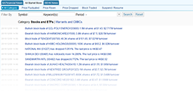 Detailed real-time quote for Warrants and CBBCs, with an exclusive screener