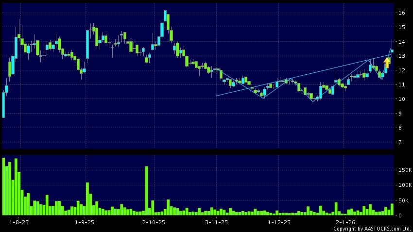 头肩底是典型的利好讯号,当股价升穿阻力线时,升势确认股价将持续上升,技术走势向好。(港股报价延迟最少十五分钟。沽空资料截至 2026-01-23 16:25。)