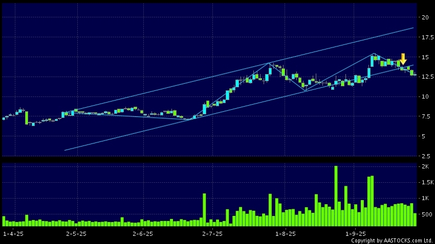 区域突破指股价在过去的一段时间只在一个范围在内活动,然後股价下跌作出突破,跌穿区域的底部,技术走势偏软。(港股报价延迟最少十五分钟。沽空资料截至 2025-10-10 16:25。)