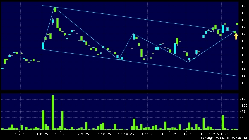 区域突破指股价在过去的一段时间只在一个范围在内活动,然後股价上升作出突破,升穿区域的顶部,技术走势向好。(港股报价延迟最少十五分钟。)