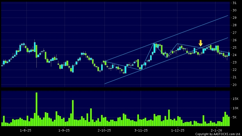 區域突破指股價在過去的一段時間只在一個範圍在內活動,然後股價下跌作出突破,跌穿區域的底部,技術走勢偏軟。(港股報價延遲最少十五分鐘。沽空資料截至 2026-01-13 16:25。)