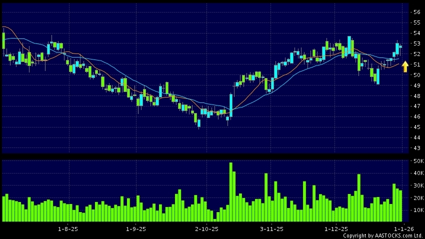 黃金交叉是一個利好訊號,指股價的短期移動平均線升穿長期移動平均線,例如50天線升穿250天線,在圖表上構成交叉的形狀。股價通常會上升形成一個上升趨勢,技術走勢向好。(港股報價延遲最少十五分鐘。沽空資料截至 2026-01-02 16:25。)